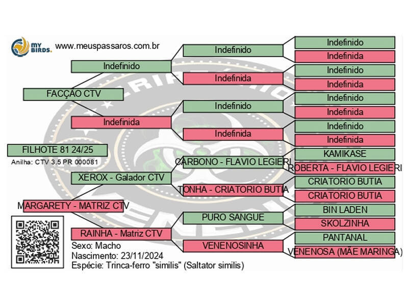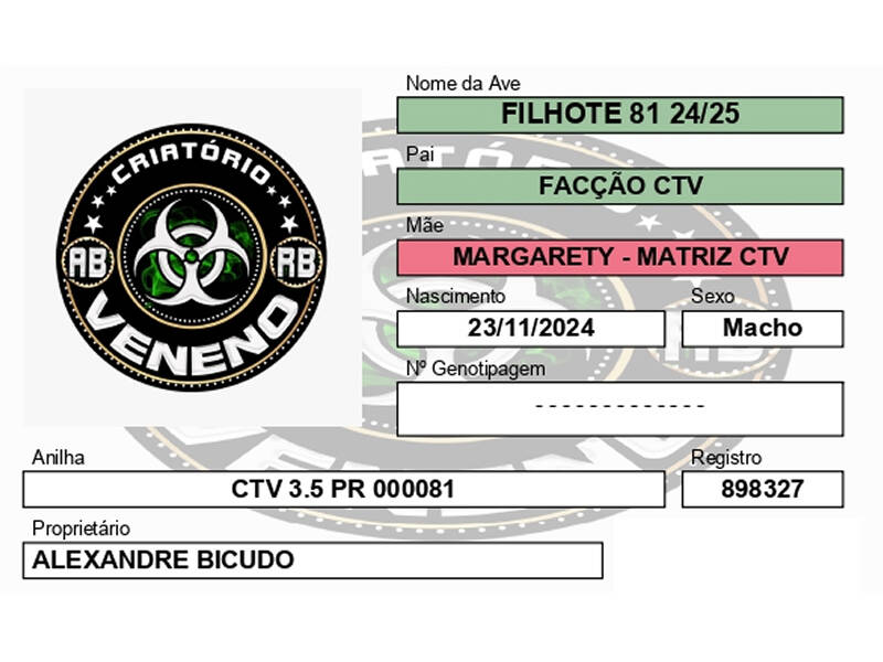 Comentários: FILHO DO VELOCISTA FACÇÃO COM MARGARETY LEVANDO SANGUE DO CARBONO, LABAREDA E TAMBÉM RAINHA IRMÃ DO APÓSTOLO E DO PIVETE CRUZA DE FIBRA E VELOCIDADE, RESULTADO DIRETO!