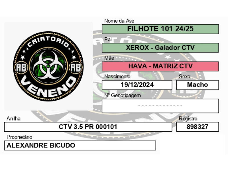 | Avô: CARBONO - FLAVIO LEGIERI |